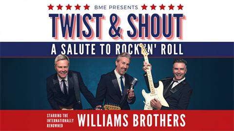 Twist & Shout Starring The Williams Brothers 24 Jan 2026 | 02:00 PM - 04:20 PM24 Jan 2026 | 07:30 PM - 09:50 PM An International Tribute Celebrating the Hits of The Rock n Roll Legends of the 50’s 60’s